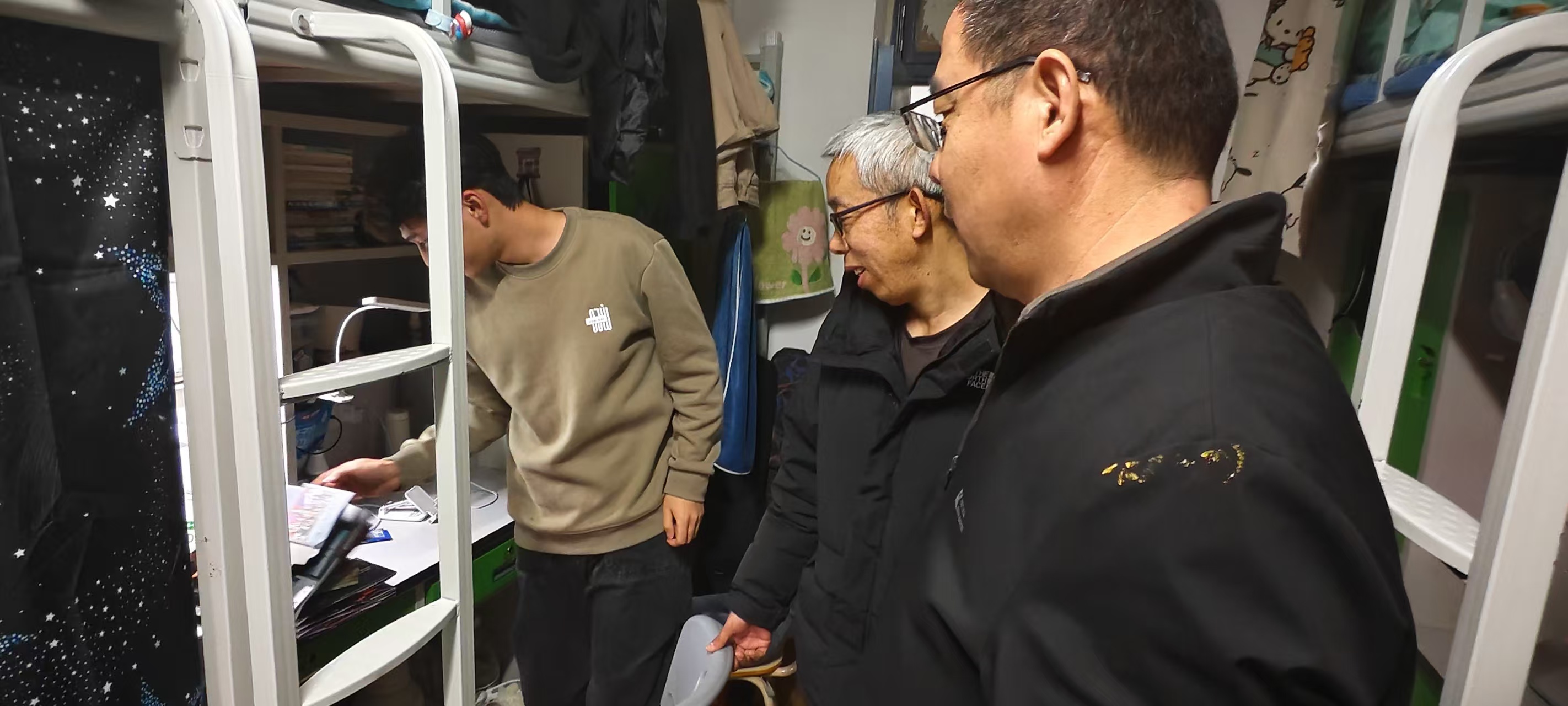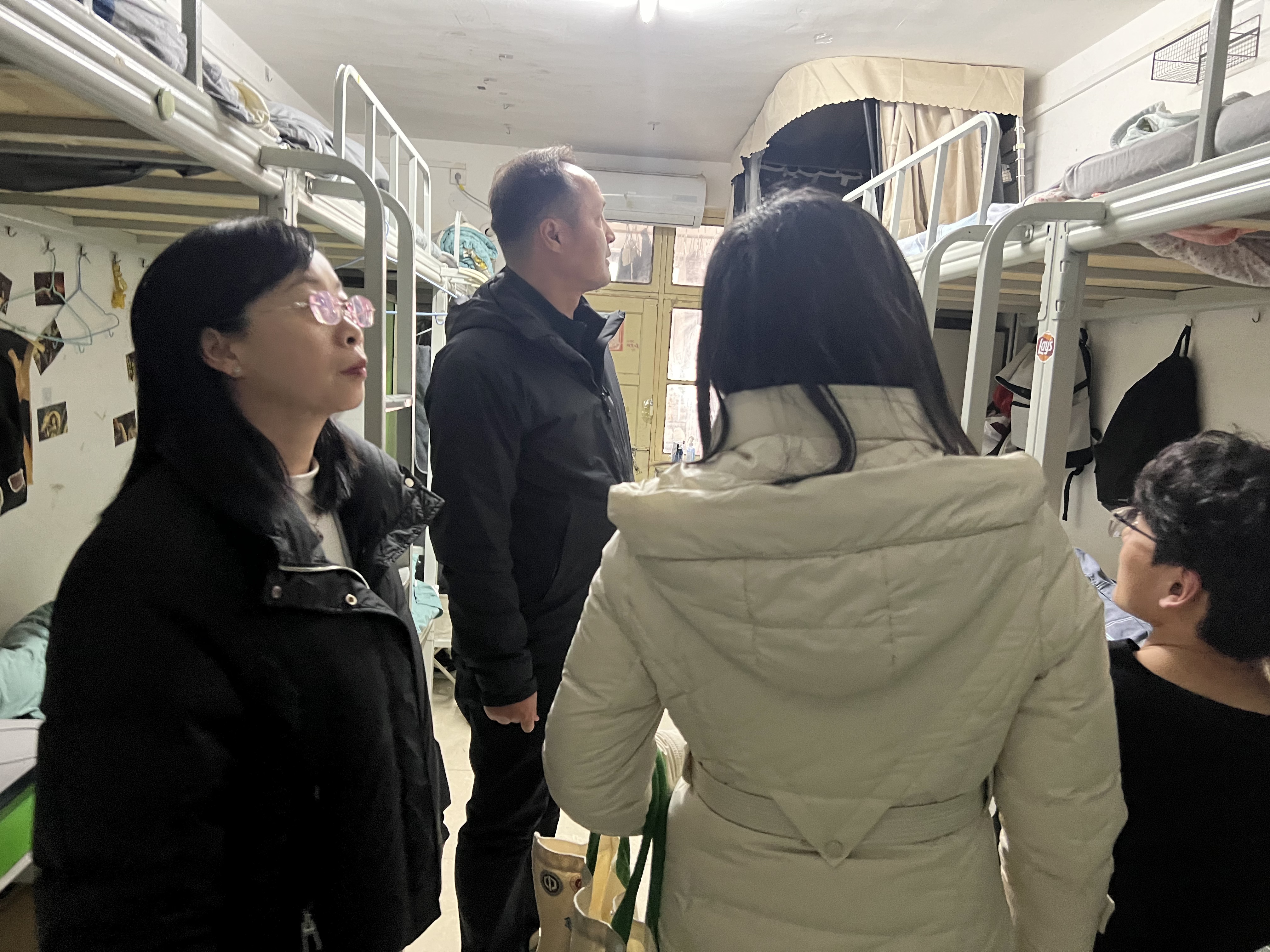 党员教师分成多个检查小组,深入学生宿舍开展走访及安全排查。在宿舍区,党员们与返校学生亲切交流寒假见闻,仔细查看用电安全、通道畅通及环境卫生情况,重点排查违规电器使用隐患,引导学生自觉维护安全整洁的住宿环境。走访过程中,全体党员既是“检查员”,又是“宣传员”和“服务员”。他们对照清单逐一记录排查情况,对可即时整改的问题当场提醒;同时主动与学生沟通,开展新学期安全宣传教育,传递党组织的关怀与温暖,将安全管理与育人工作有机结合,实现同频共振。